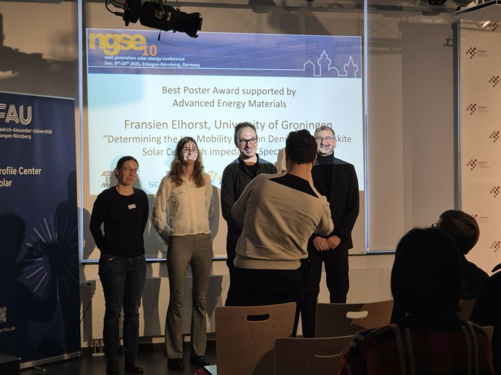 Fransien Elhorst from the Rijksuniversiteit Groningen won the Best Poster Award at the Next Generation Solar Energy Conference  NGSE10 in Erlangen-Nürnberg, Germany, on 9 & 10 December !