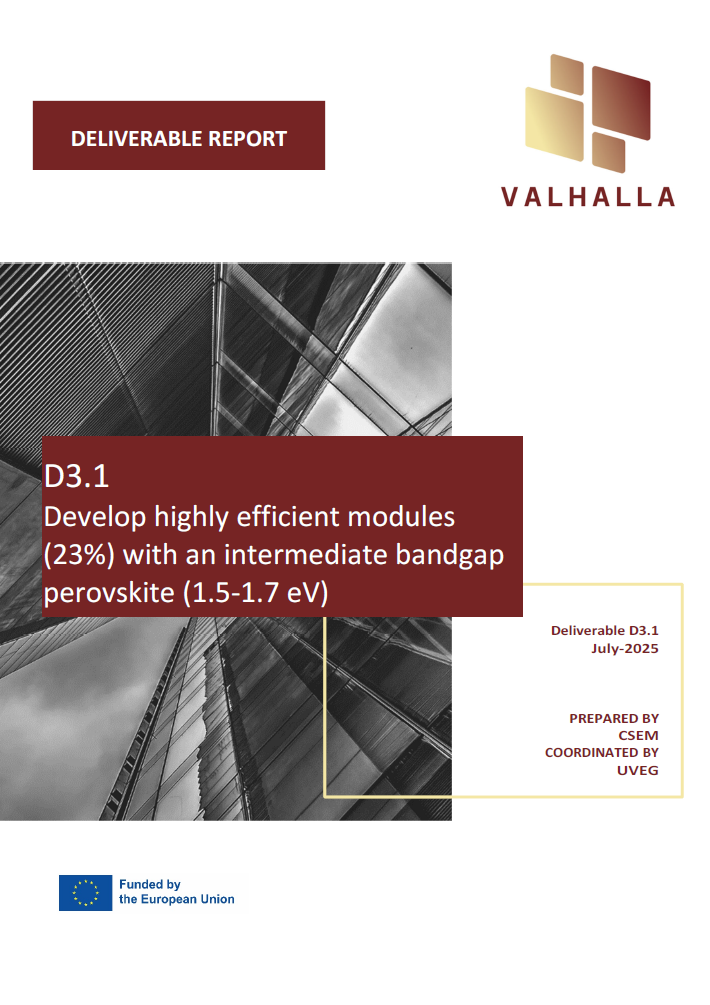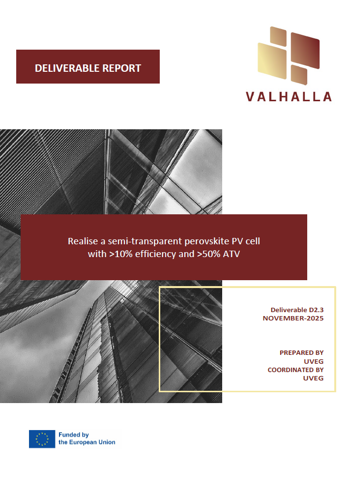 The purpose of this deliverable is to describe the efforts in VALHALLA to achieve technological proof-of-concept of a semi-transparent perovskite solar cells with PCE > 10 % and AVT > 50 % achievable within the project’s vacuum-processed device framework, supporting applications such as building-integrated photovoltaics (e.g. power-generating windows)..