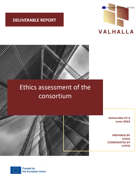 The aim of this document is to describe the outcome of the ethics self-assessment of the VALHALLA consortium and project. As such, it is based on the Horizon Europe “How to complete your ethics self assessment” (version 2.0 from May 13th 2021). Three main areas were identified as relevant for VALHALLA, namely; “Personal data”, “Non-EU countries” and “Environment, health and safety”. Finally, we also assessed the “potential of misuse of results”.